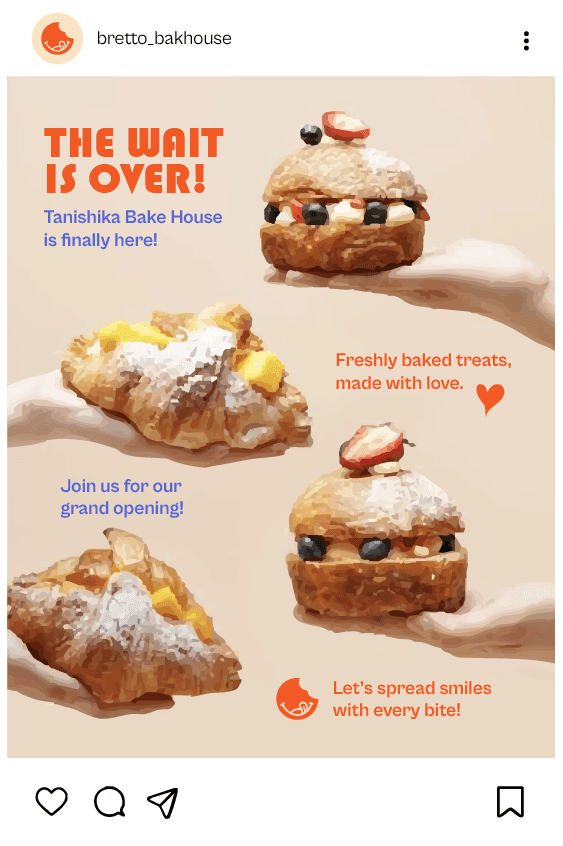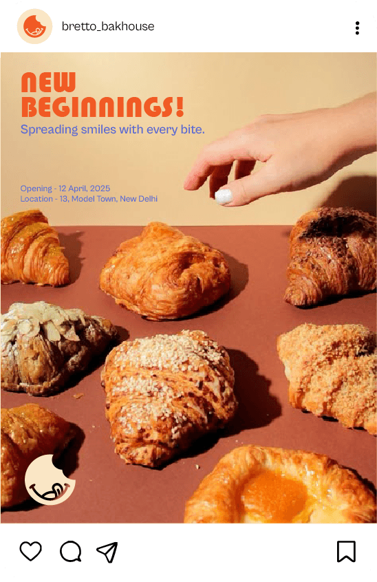 With the promise “Spreading Smiles with Every Bite,” Bretto Bakehouse focuses on freshness, flavor, and sentiment. Every item, from flaky pastries to rich desserts, is imagined as a moment of joy. The brand experience goes beyond products; it’s about gifting happiness, savoring comfort, and creating sweet memories one bite at a time. This self-driven branding project brings that feeling to life through expressive visuals and an uplifting tone of voice.